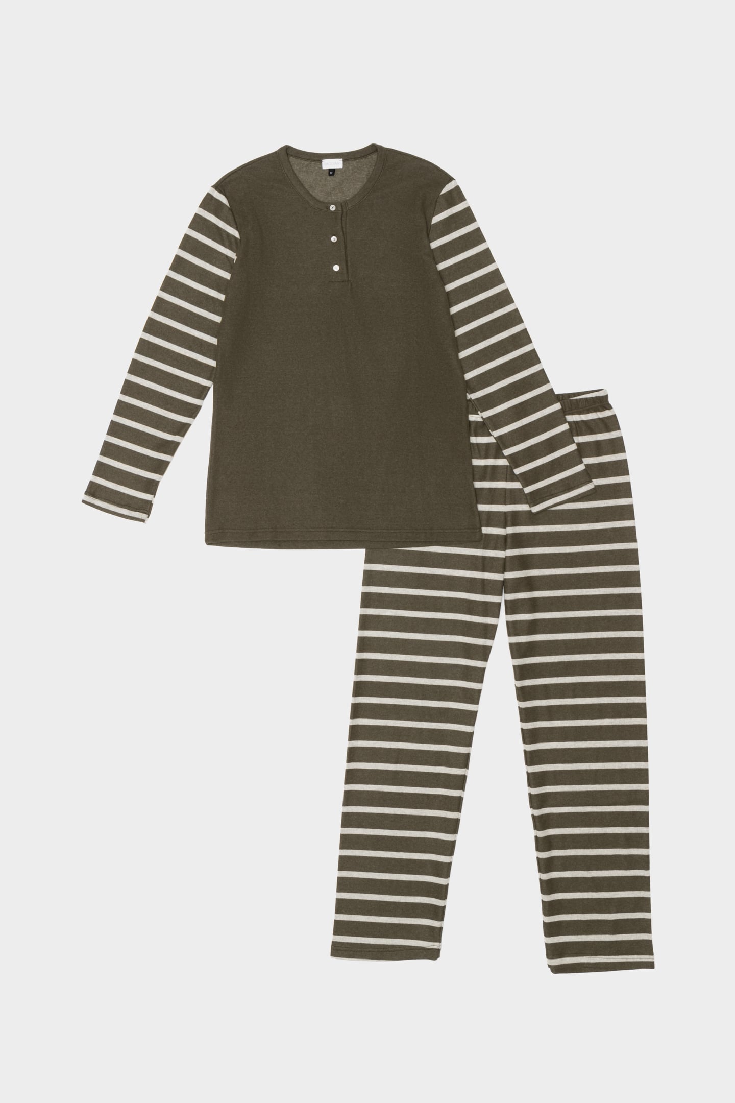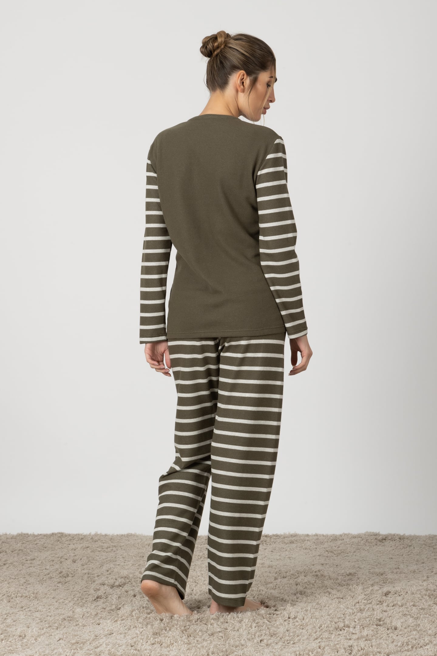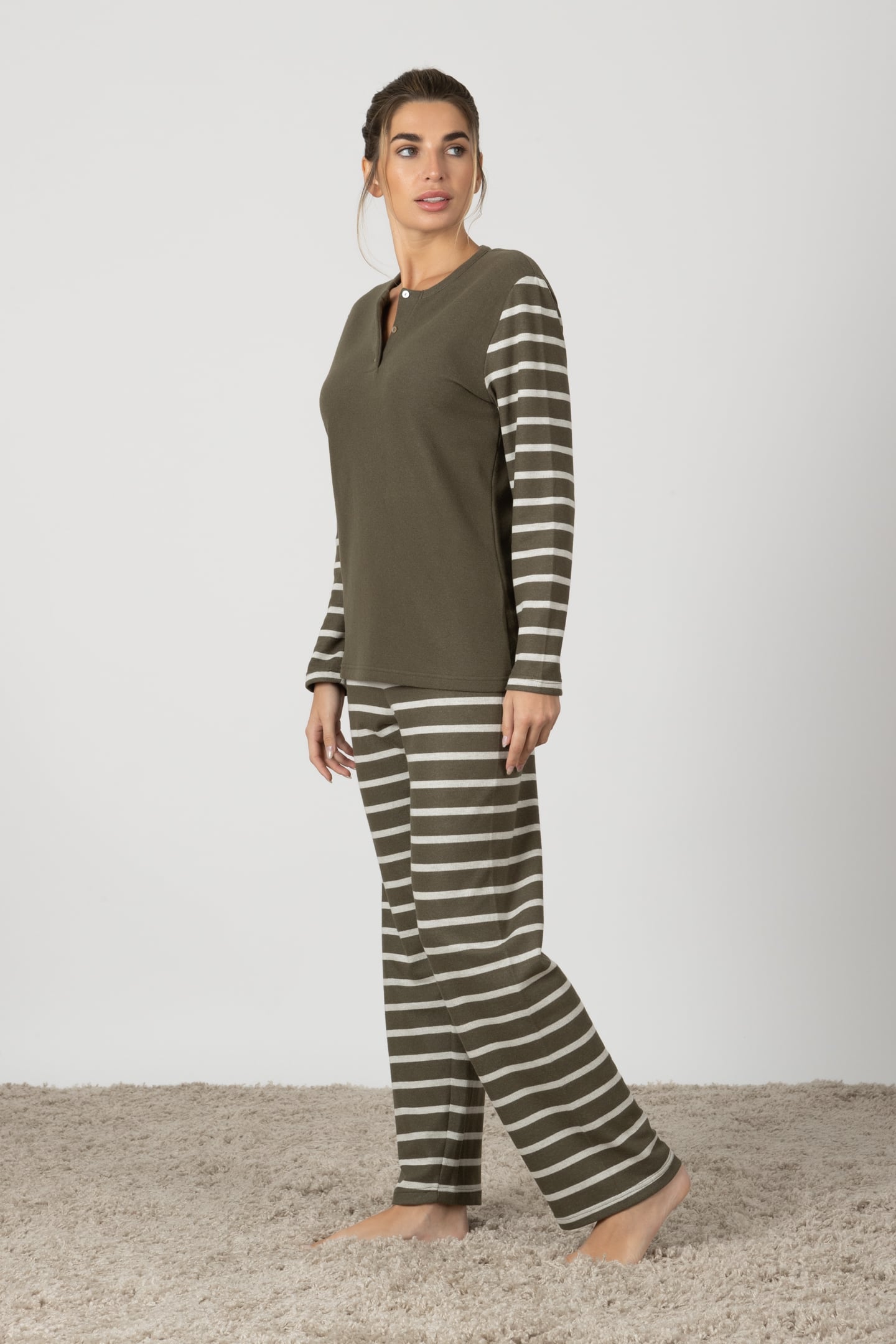 Michela | Pigiama Lungo - Verde Militare a Righe