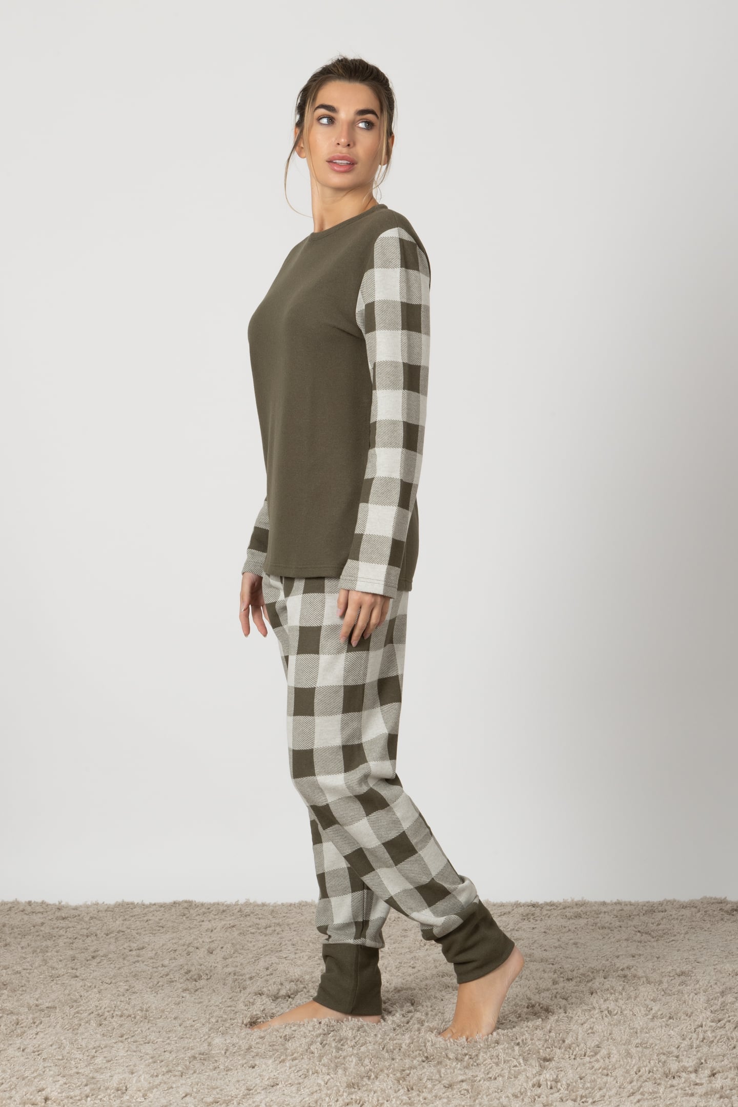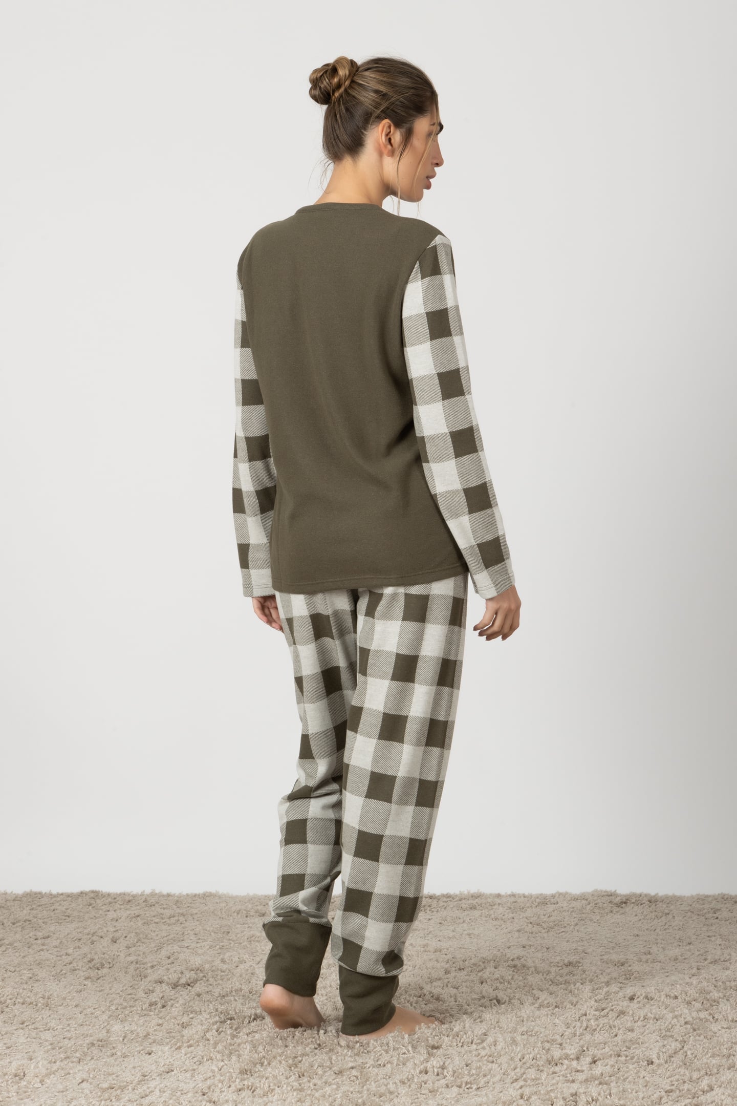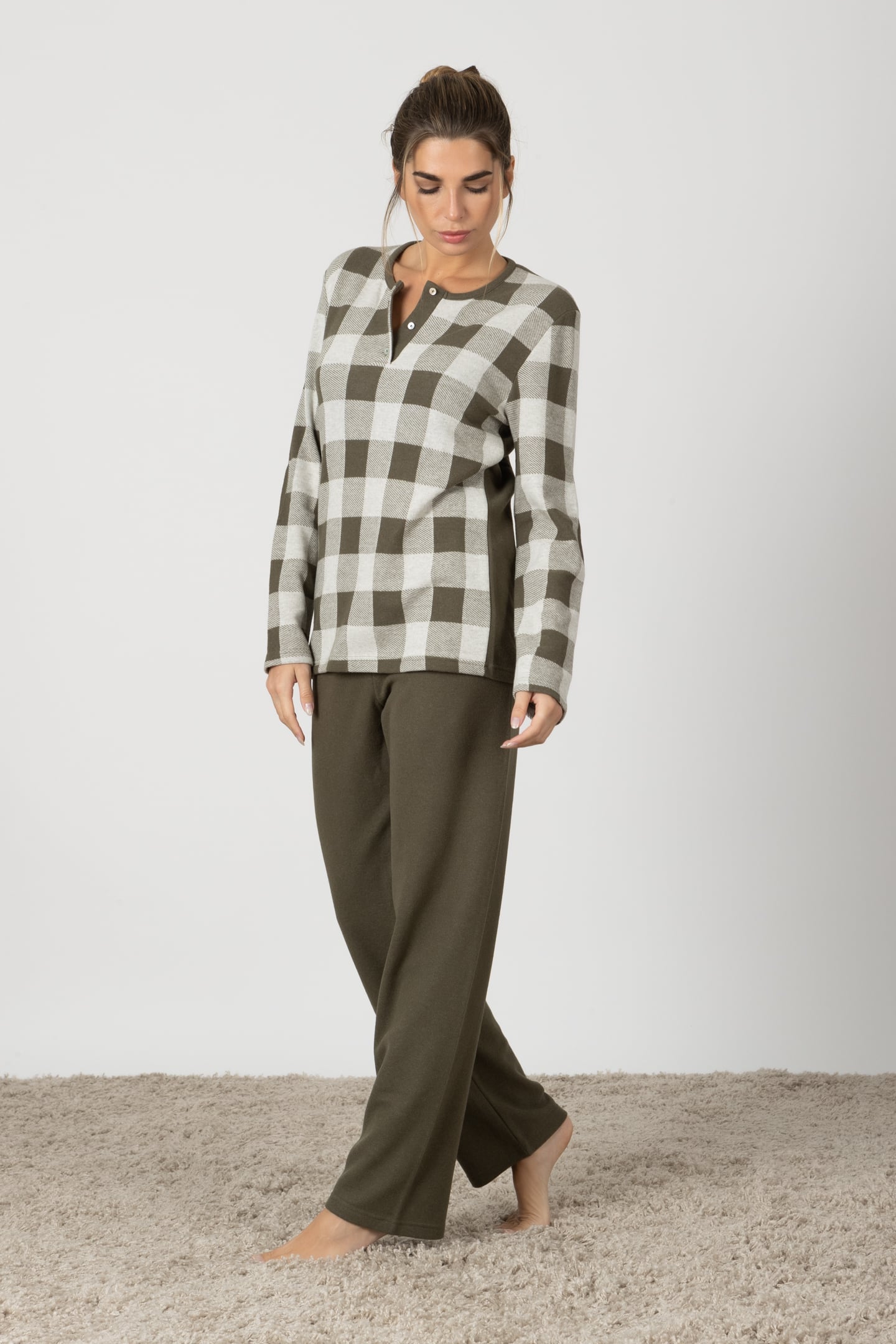 Agnese | Pigiama Lungo - Verde Militare Quadretti
