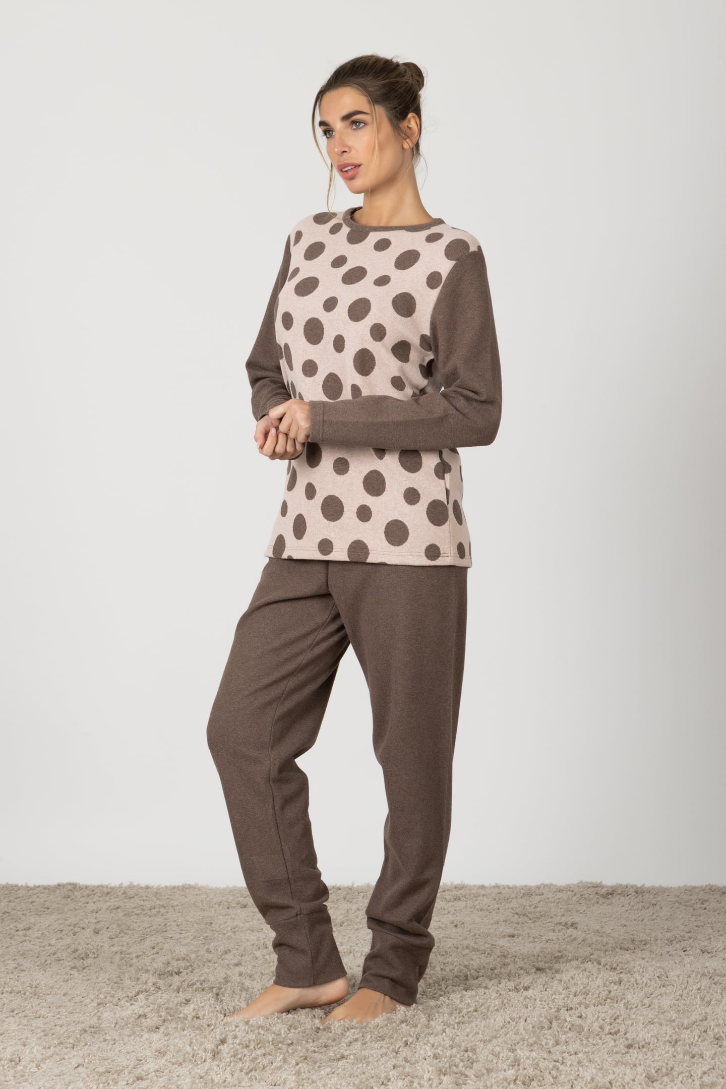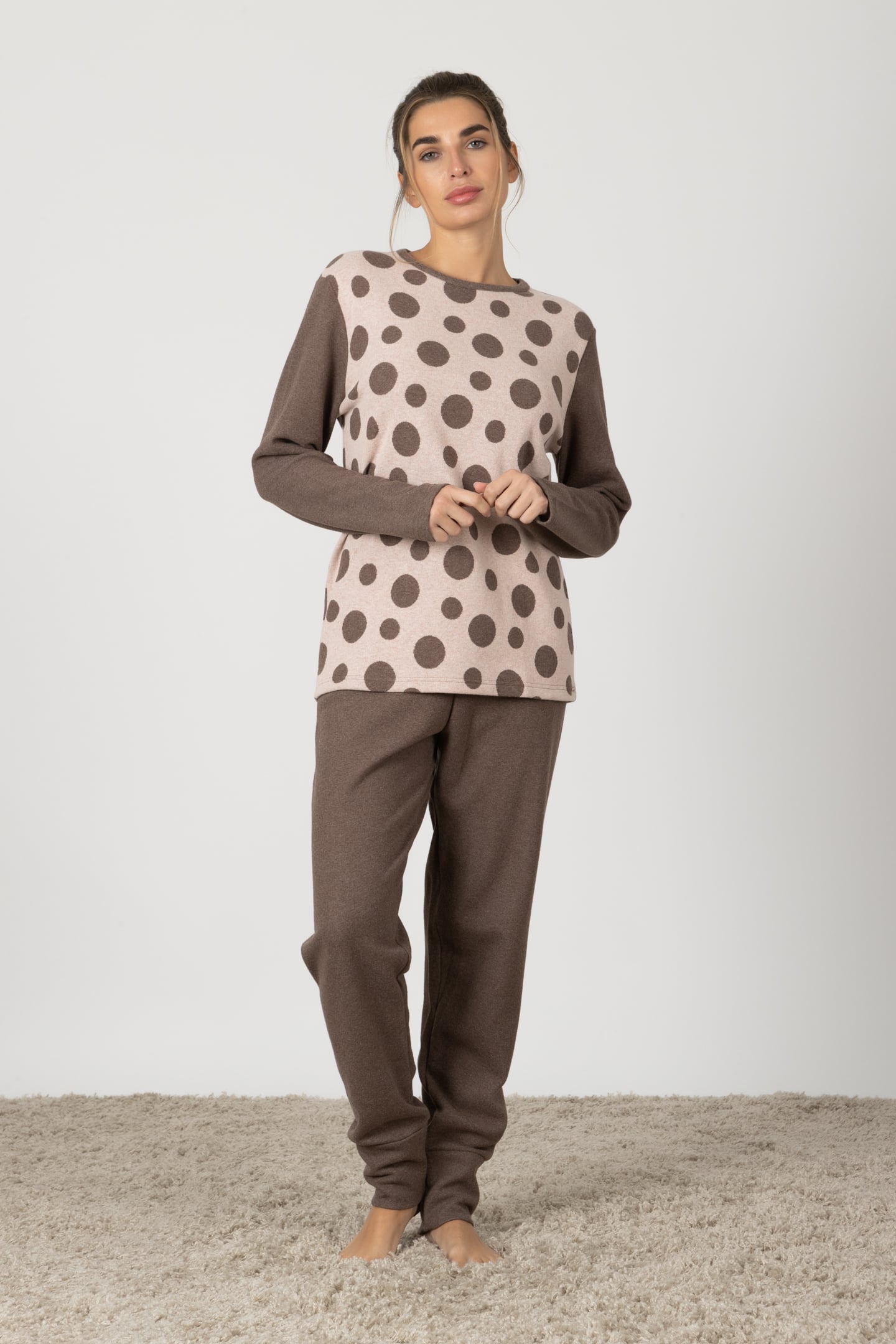 Marcella | Pigiama Lungo - Tortora Pois