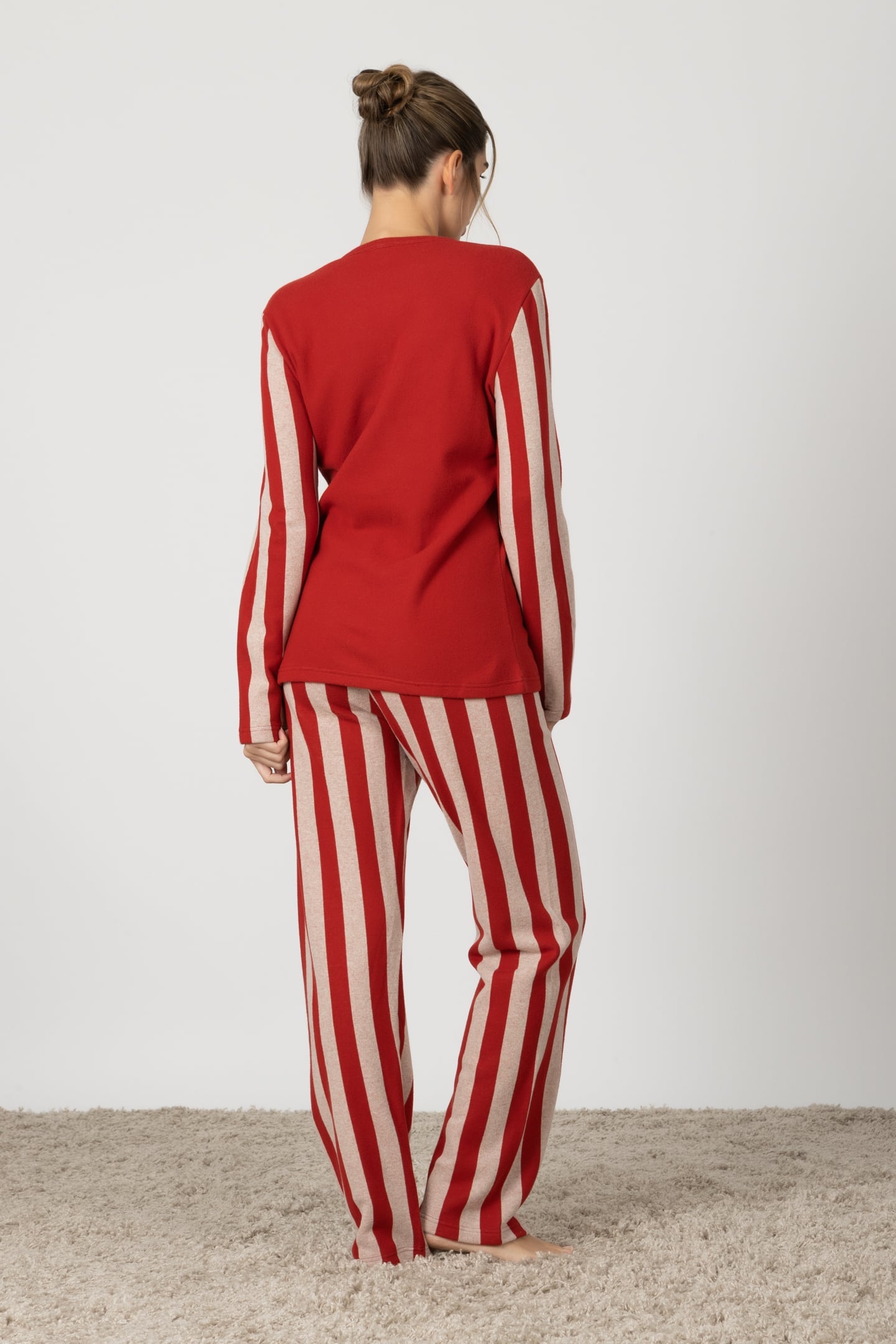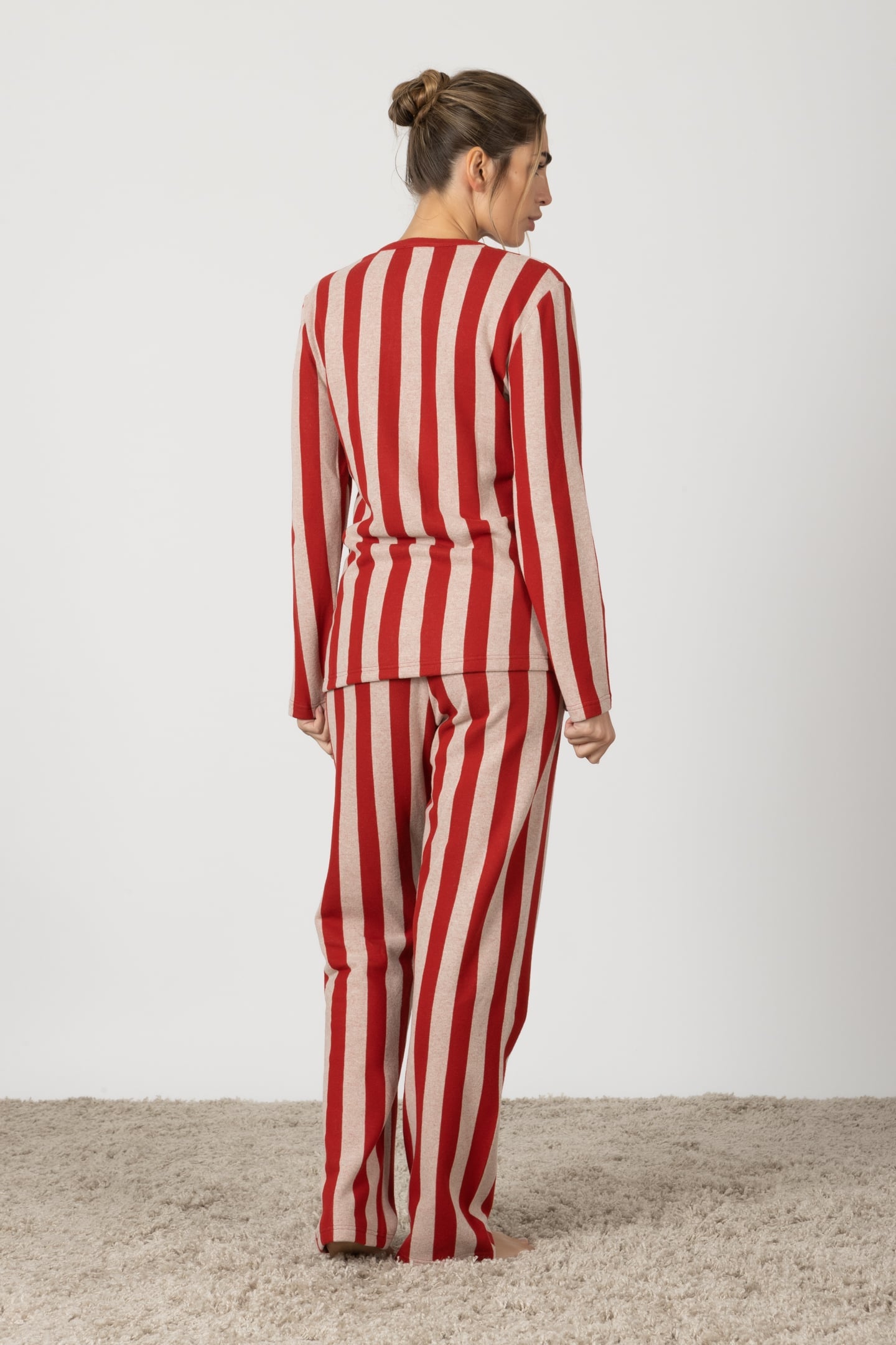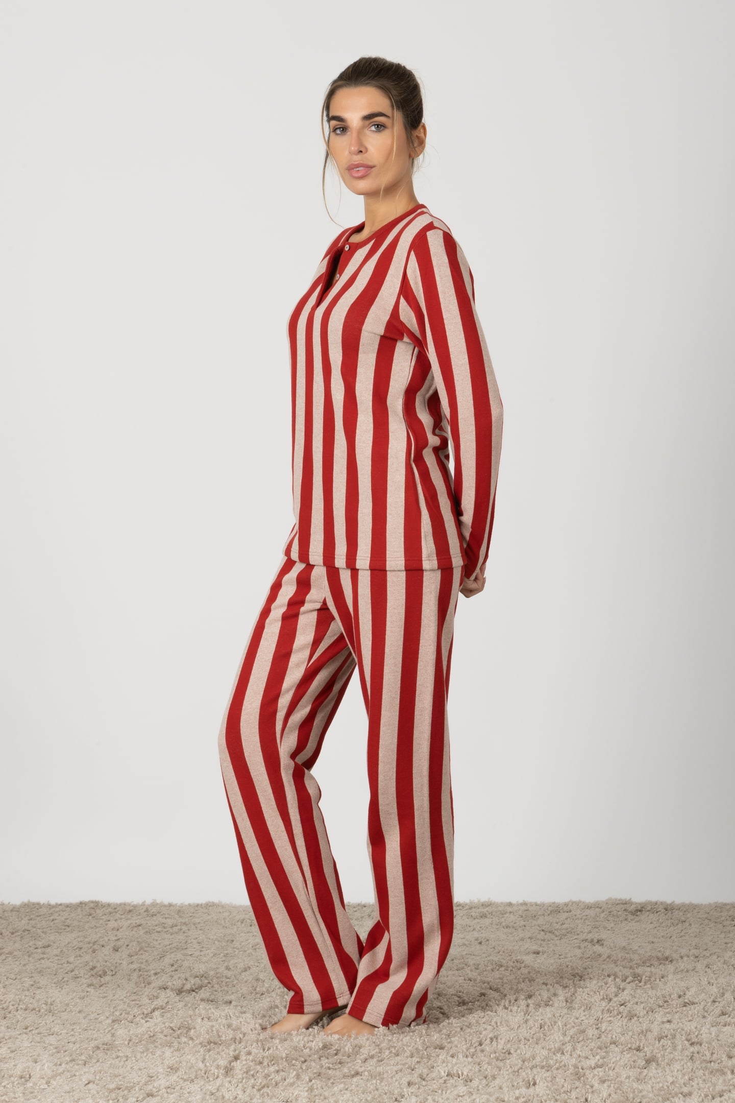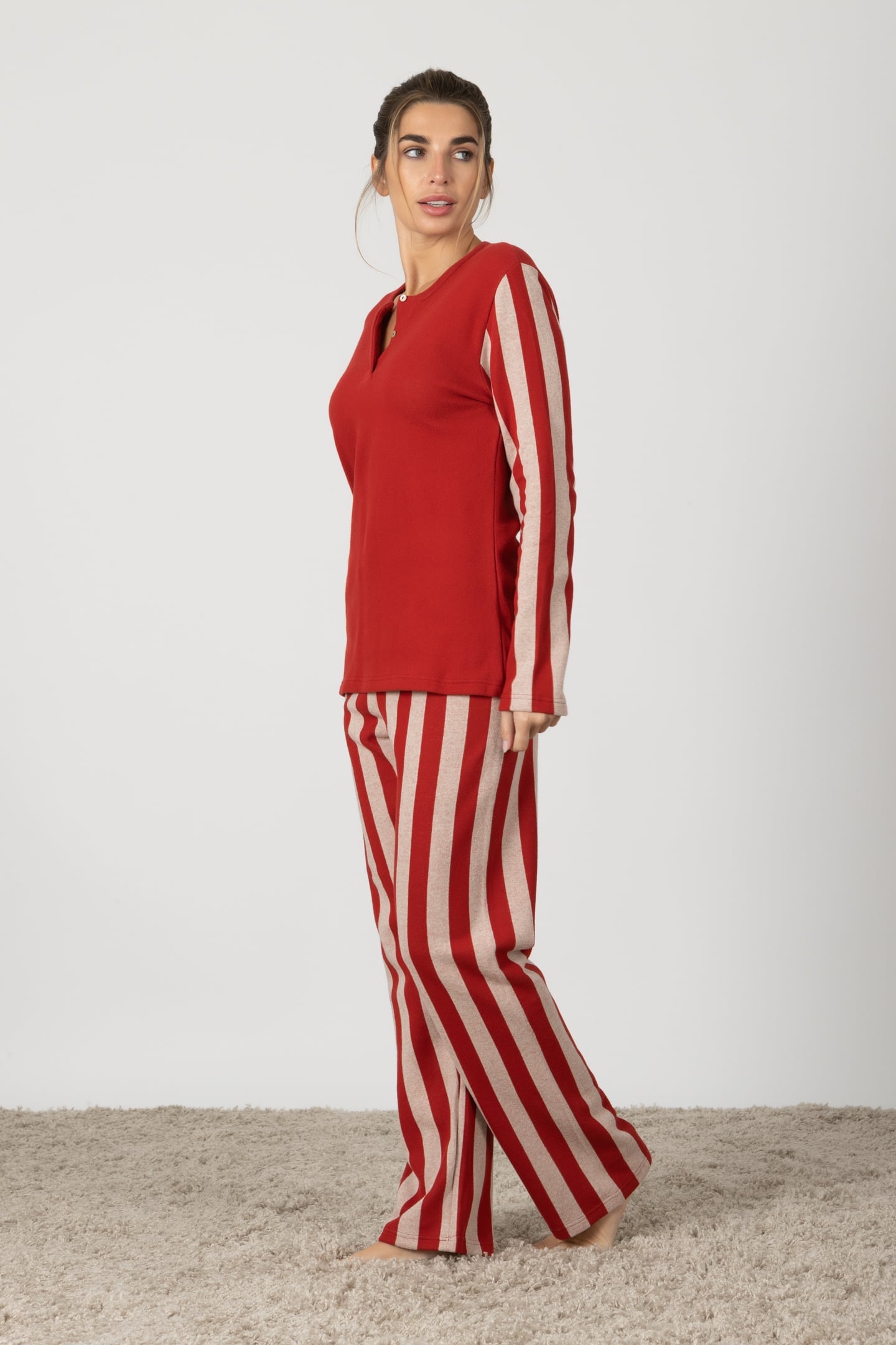 Michela | Pigiama Lungo - Rosso a Righe
